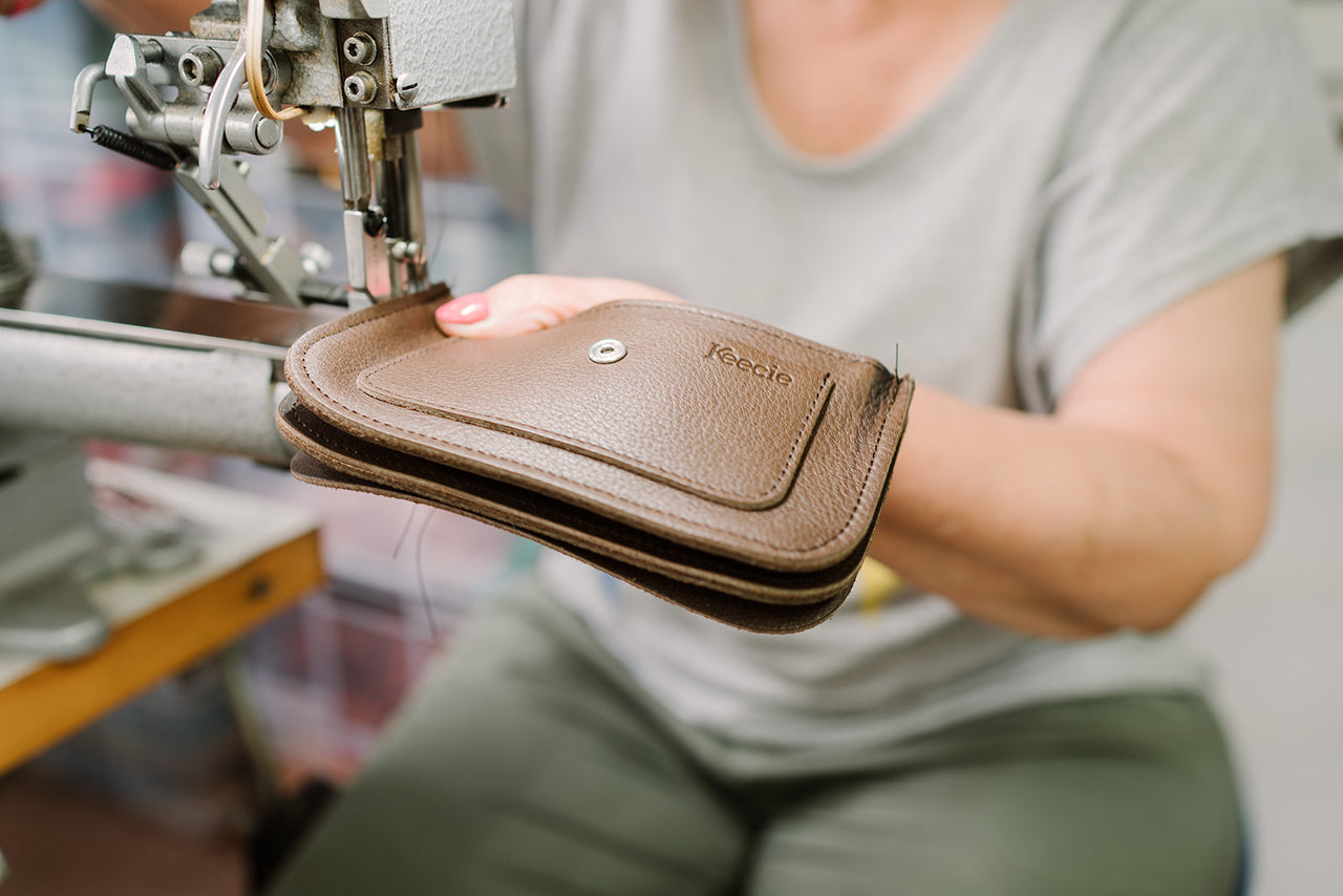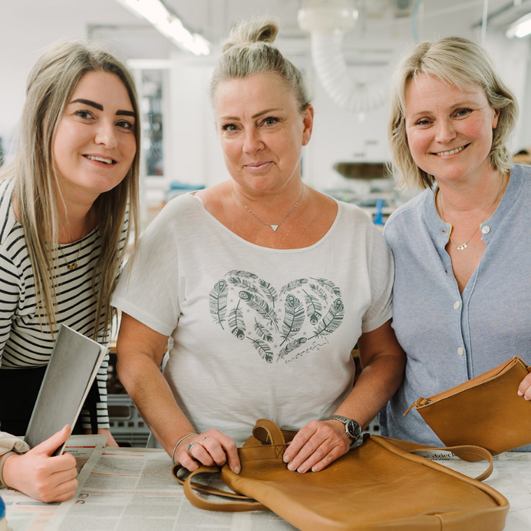 Onze collectie wordt gefabriceerd door een kleinschalig naaiatelier in Polen waar we graag komen. Niet alleen omdat het daar zo gezellig is en omdat ze bijzonder lekkere thee schenken. Maar vooral omdat ze vakkundig handwerk leveren en al jaren met ons meedenken hoe onze ontwerpen het beste kunnen worden uitgevoerd. Welk leer gebruiken we voor welk ontwerp? Hoe creëer je volume in een tas? Welke manier van stikken geeft de beste kwaliteit?