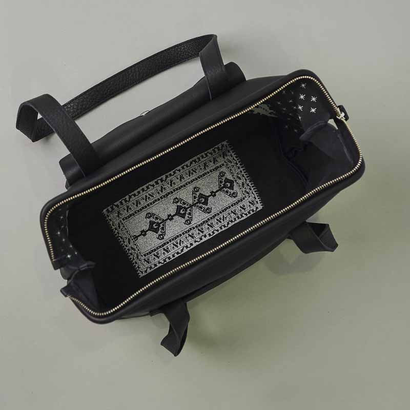 • deze stijlvolle leren dokterstas voor dames tas heeft twee prints: op de bodem een lekker zacht kleed en een gezellige huiskamer aan de binnenzijde