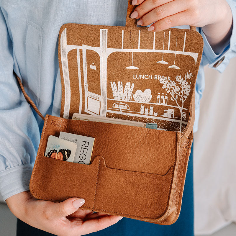 De Lunch Break schoudertas is in ons familie-atelier in Polen gemaakt van hoogwaardig, duurzaam leer, waardoor je kunt rekenen op een lange levensduur. De veelzijdige cognac kleur van deze leren crossbody bag voor dames is eenvoudig te combineren met diverse outfits, variërend van casual jeans tot een elegante jurk. Dit maakt het modieuze leren schoudertasje tot een trouwe en veelzijdige metgezel, waar je dagelijkse avonturen je ook brengen.