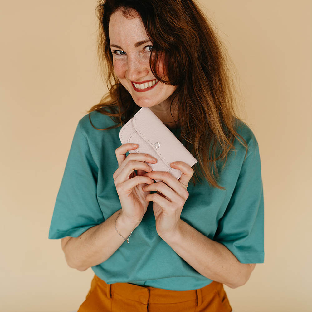 Kleine lichtroze leren portemonnee