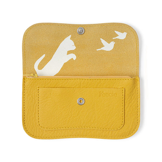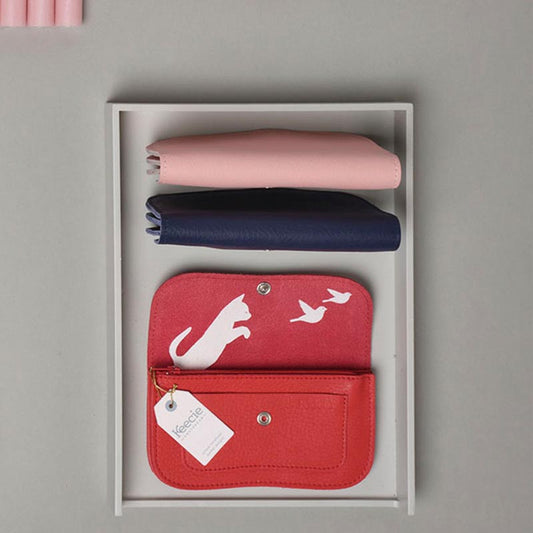 Bij de ene duurzame portemonnee voor vrouwen zochten we naar een ontwerp met een speels karakter en hebben we gekozen voor een jonge kat midden in haar eerste jach. Bij de andere pasjeshouder lieten we ons inspireren door onze wil om het altijd anders te doen en kwamen we uit op een vrolijk en eigenwijs kuikentje. Maar het liefst genieten we toch van de natuur en de mooie wereld om ons heen, met bijvoorbeeld een botanische print vol geluk.