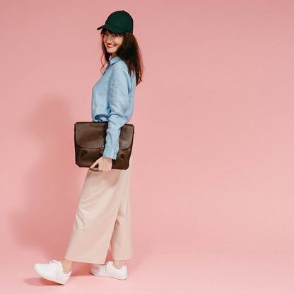 Deze duurzame laptoptas van donkerbruin leer is het ideale item voor de modieuze, zakelijke vrouw. Met ruimte voor al je essentials, inclusief je laptop tot wel 15 inch, is deze stijlvolle leren laptoptas voor dames de ultieme metgezel voor onderweg.