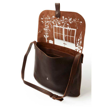 Ook deze leren laptop schoudertas heeft een kenmerkende Keecie-print. Bij de Back Yard hebben we gekozen voor onze droomplek in de achtertuin. Het tuinhuisje omringt door planten als ideale werkplek, waar we iedere ochtend wel met onze dampende kop koffie en bakken vol creativiteit heen zouden willen wandelen. Met deze zakelijke leren laptoptas voor dames heb je deze droom altijd bij de hand.