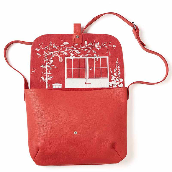 Ook in de Back Yard hebben we weer een kenmerkende Keecie-print gedrukt. Deze keer hebben we ervoor gekozen om onze gedroomde werkplek af te beelden. De zeefdruk van het tuinhuis waar we graag 's ochtends met een kopje koffie in de hand aan het werk zouden willen gaan. Zo heb jij met deze dames laptoptas van leer de ideale werkplek altijd binnen handbereik, waar je ook bent.