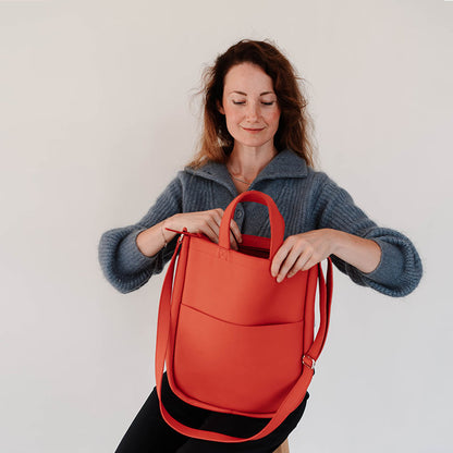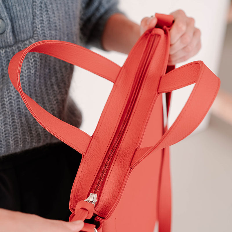 Eindelijk een tote bag waar je mee wordt gezien! Onze Coral Day Dreamer is gemaakt van oersterk Italiaans leer in een speelse rode kleur. Daarmee is de tas een eyecatcher op de meer feestelijke gelegenheden, maar ook stijlvol genoeg voor op je werk. Door de ruime leren handvatten en de verstelbare draagband, draag je deze tas zoals jij dat wilt: in de hand, crossbody of vlot over één schouder geslagen.