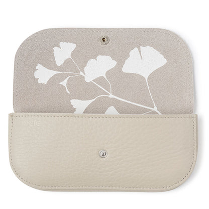 De voorkant is gemaakt van een dubbele laag leer, dus je zonnebril is goed beschermd. Aan de binnenkant vind je natuurlijk een zeefdrukprint. Dat is net dat extraatje waar Keecie om bekend staat. Dit keer hebben wij gekozen voor een print van het blad van een Ginkgo boom. In China en Japan is dit een heilige boom die geluk symboliseert.