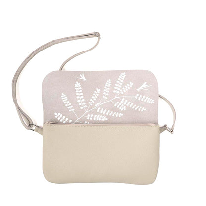 Door de verstelbare draagband kun je deze medium-sized schoudertas dragen zoals jij wil: als een fanny bag op de buik, een sling bag op de rug, of gewoon hangend aan je schouder. De kleur Cement is een warme beige tint die goed combineert met werkelijk alle kleuren. Klassiek of tijdloos, maar ze gaat ook juist weer mooi samen met frisse pastelkleuren. De botanische zeefdruk van de Kowhai boom aan de binnenkant is op deze kleur wat subtieler, maar komt daardoor misschien nog wel beter tot zijn recht. En wees niet bang voor vlekken, want deze leren damestas is makkelijk schoon te houden.