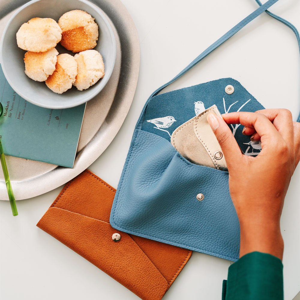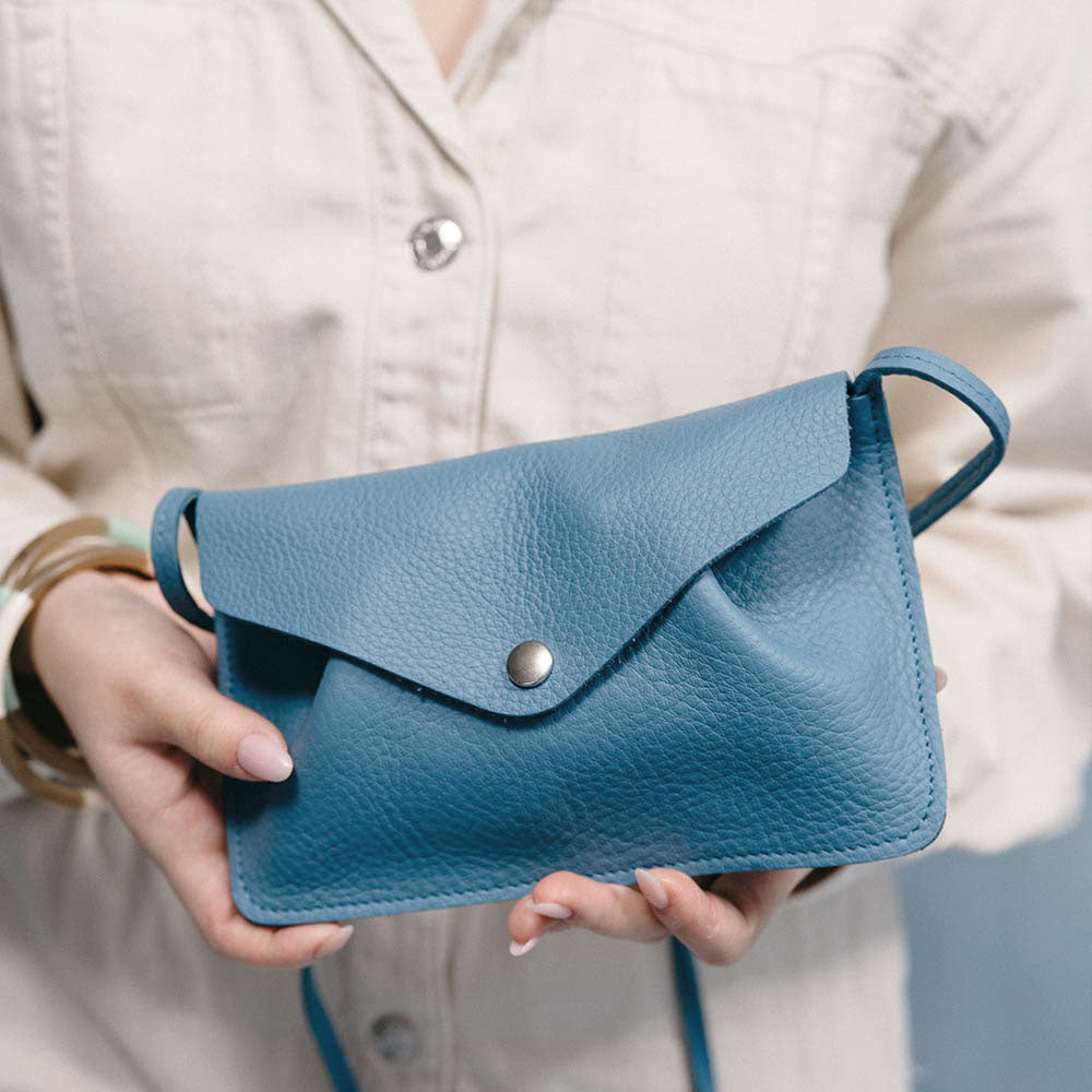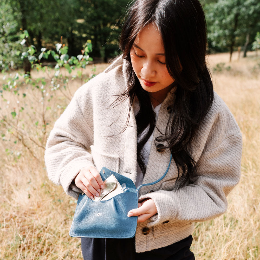 In tegenstelling tot de meer traditionele leren envelop tassen voor dames, heeft onze Backing Vocals een verstelbare schouderriem. Hier hebben we bewust gekozen voor een wat ruime maat, zodat je met een simpele knoop de riem op jouw perfecte lengte kunt zetten. En dankzij het eenvoudige ontwerp, is de tas licht in gewicht en heb jij een comfortabele leren handtas die nooit in de weg zit tijdens het dansen.