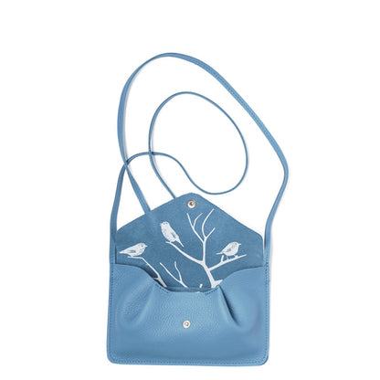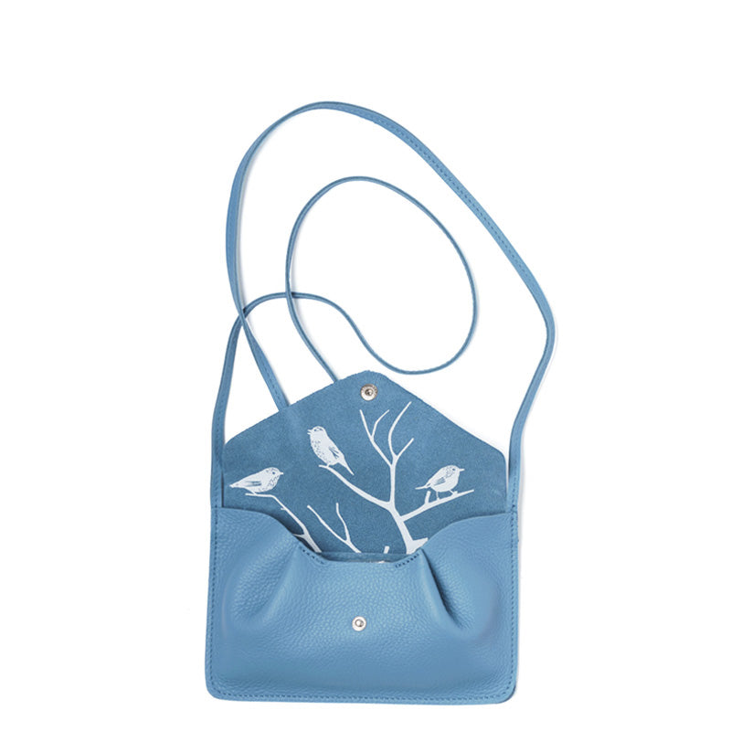 - aan de binnenkant van deze leren handtas voor dames zit de zeefdruk van een boom met drie nachtegaaltjes