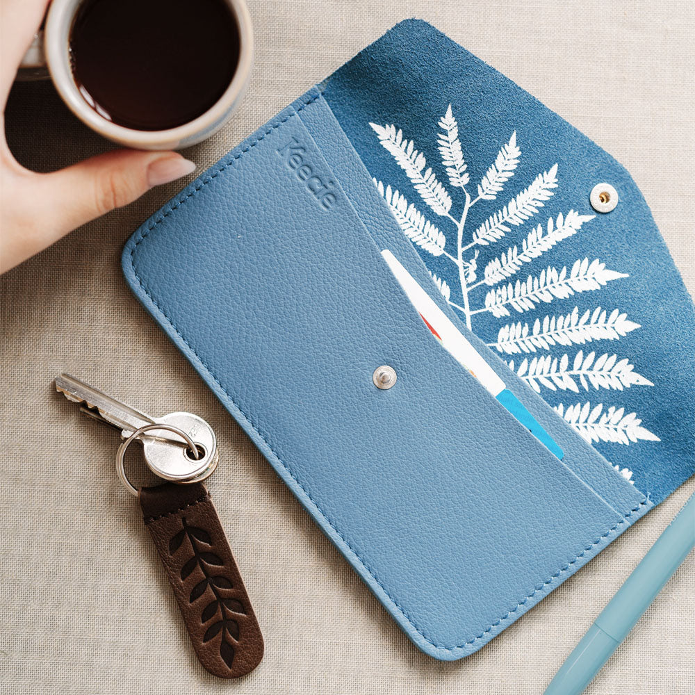Aan de binnenkant vind je een print van een blad van de Jacaranda. Ook wel de mooiste boom op aarde genoemd. En wie weet heb je geluk en groeit er nog eens geld aan.