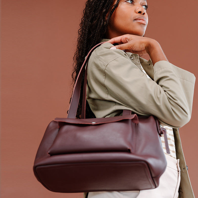 De Aubergine kleur van het leer van deze duurzame dokterstas is veelzijdig te combineren. De diepe bordeauxrode tint past perfect bij zowel donkere als lichte kleuren en geeft elke outfit een vleugje luxe. Deze kleur is tijdloos en klassiek, waardoor je er jaar na jaar plezier van zult hebben.