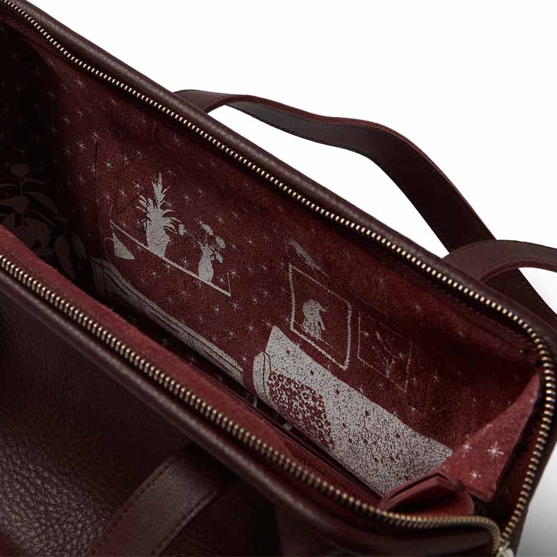 - deze stijlvolle leren dokterstas voor dames tas heeft twee prints: op de bodem een lekker zacht kleed en een gezellige huiskamer aan de binnenzijde