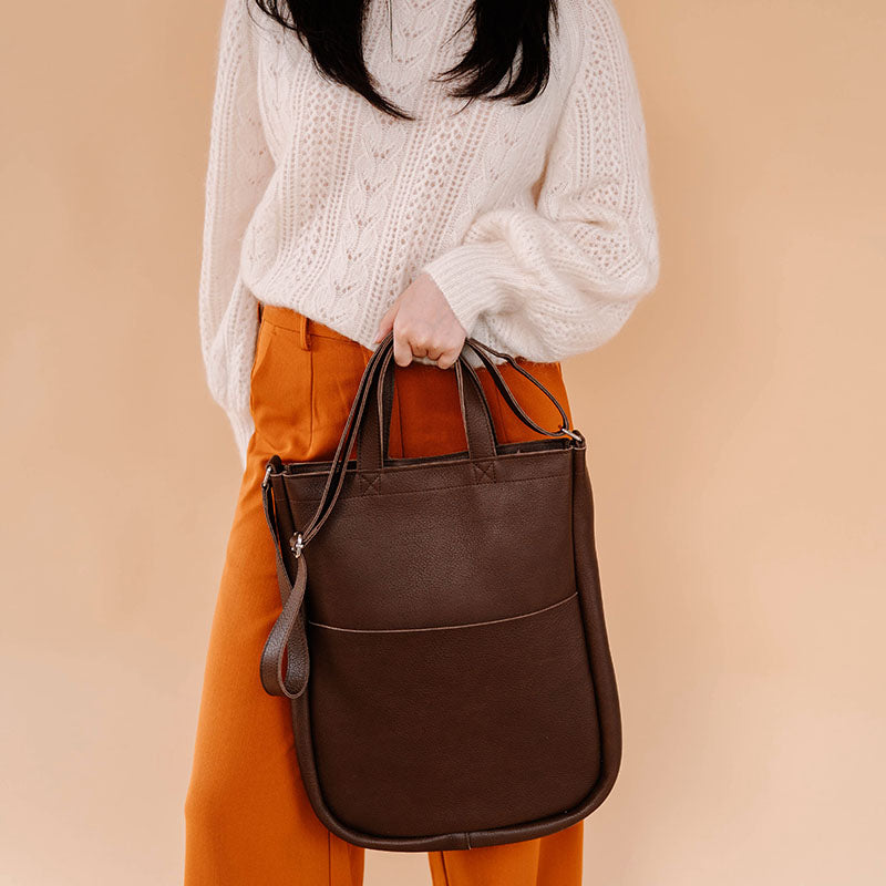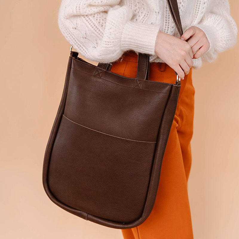 Donkerbruine leren tote bagKan beschikbaarheid voor afhalen niet laden