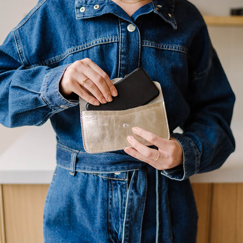 - leren hoes voor telefoon met insteekvak voor papiergeld en pasjes
