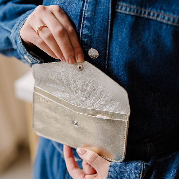 Aan de binnenkant vind je een print van een blad van de Jacaranda. Ook wel de mooiste boom op aarde genoemd. En wie weet heb je geluk en groeit er nog eens geld aan.
