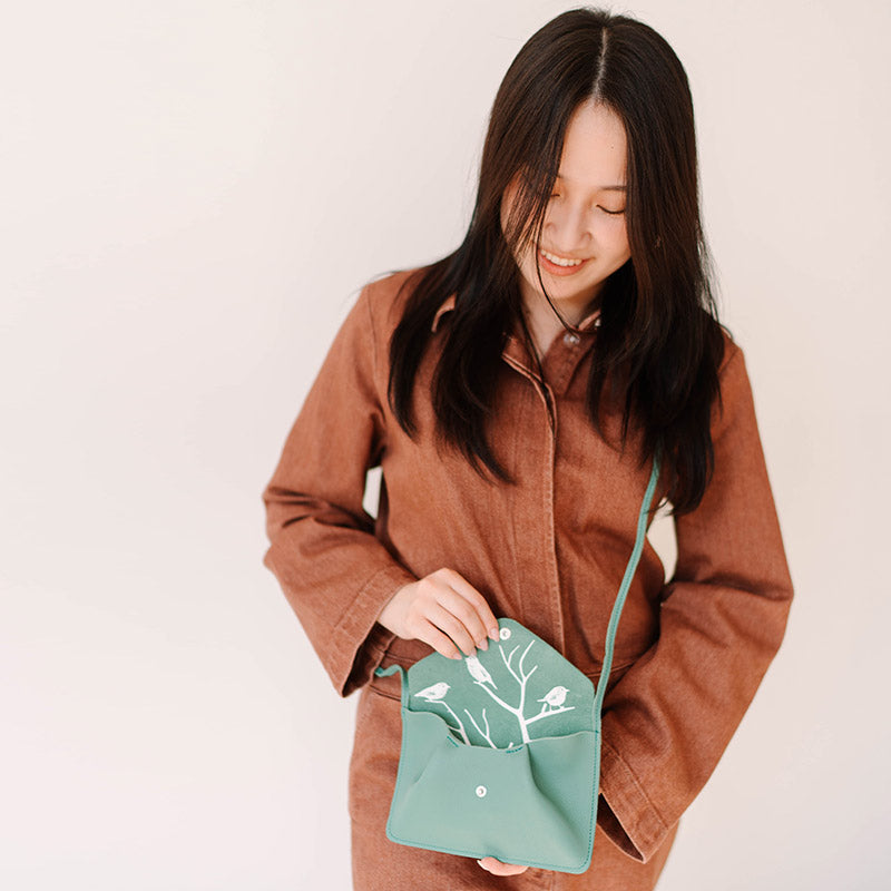 Klein handzaam tasje, mooie kleur (forest). Handig voor telefoon en bankpas. Met formaat huidige telefoon kan er helaas verder niks meer in. Cat chase is handiger als je meer mee wil kunnen nemen. Desalniettemin heel blij met dit tasje