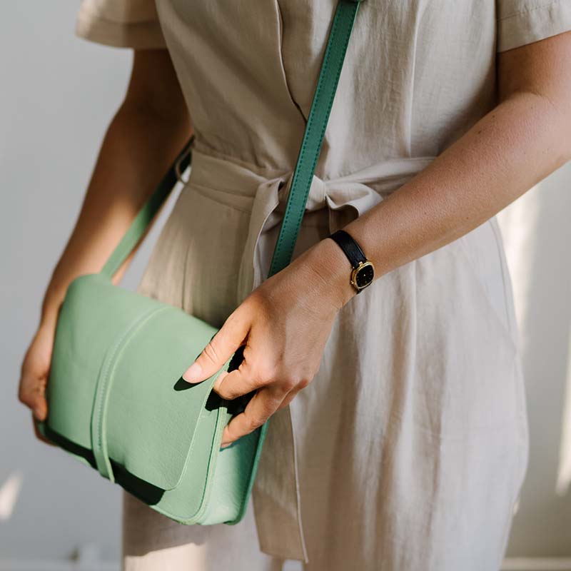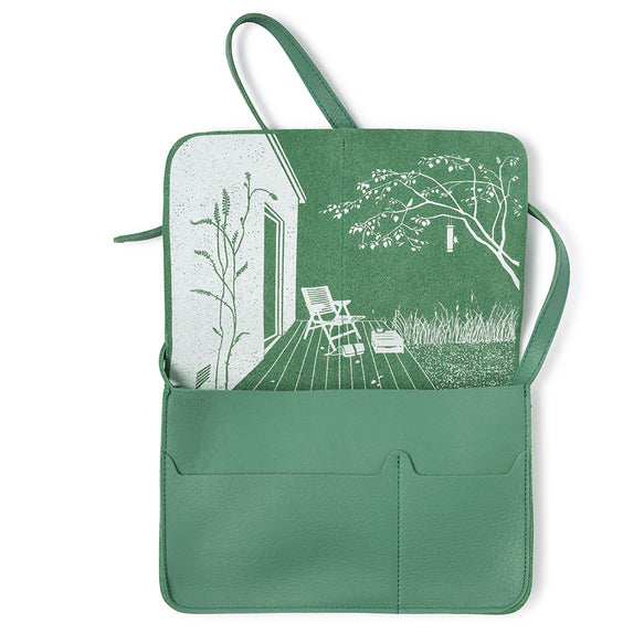 Het A5-formaat van deze modieuze groene leren schoudertas heeft genoeg ruimte voor al jouw dagelijkse essentials. Maar naast je sleutels, telefoon en portemonnee, past er met gemak ook een goed boek of een notitieboekje in. Zo ben jij altijd klaar voor een ontspannen moment voor jezelf. Precies de reden dat we bij deze leren damestas hebben gekozen voor de zeefdruk van ons favoriet plekje in de tuin