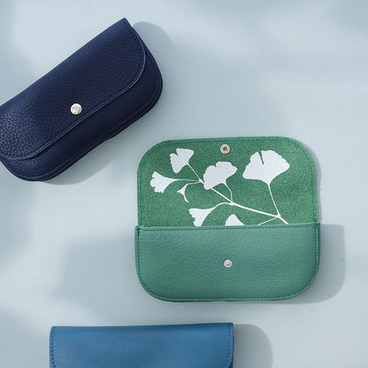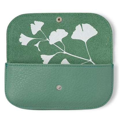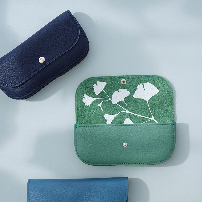 De voorkant is gemaakt van een dubbele laag leer, dus je zonnebril is goed beschermd. Aan de binnenkant vind je natuurlijk een zeefdrukprint. Dat is net dat extraatje waar Keecie om bekend staat. Dit keer hebben wij gekozen voor een print van het blad van een Ginkgo boom. In China en Japan is dit een heilige boom die geluk symboliseert.