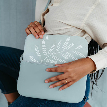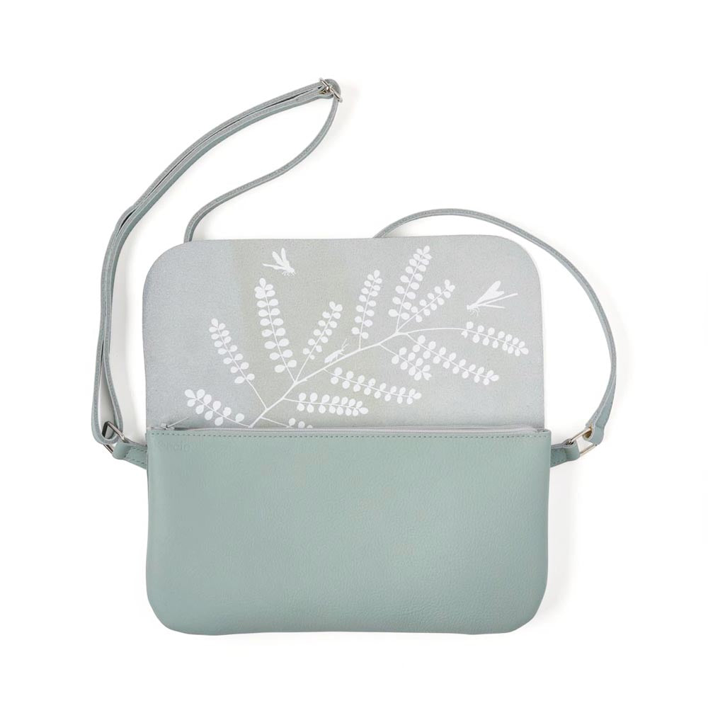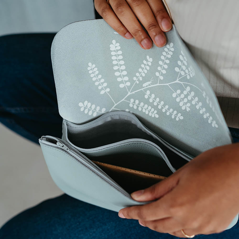 Deze stoere leren Dusty Green damestas gaat goed samen met andere kleuren. Het zachte pastel combineert prachtig met bruintinten, maar laat zich ook graag zien met fellere kleuren zoals groen, geel of rood. Bovendien maakt de verstelbare schouderband van de Double Up een veelzijdige crossbody tas, sling bag of heuptas. Hierdoor is deze mooie damestas met rits het hele jaar door te dragen, of je nu casual op pad wil of naar een chique feest moet. En dat sluit weer helemaal aan bij de vrolijke zeefdruk aan de binnenkant van onze Double Up. Dit keer hebben we gekozen voor een botanische print van de Kowhai. Dit is een belangrijke boom voor de Maori, die zij op iedere mogelijke manier gebruiken in hun dagelijkse leven.