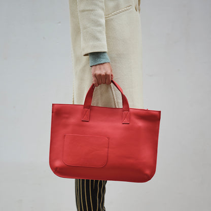 Altijd al opzoek geweest naar een duurzame, maar vrolijke leren shopper tas voor dames? Kijk niet verder, want deze schoudertas, gemaakt van prachtig koraalrood leer, is de trouwe metgezel...