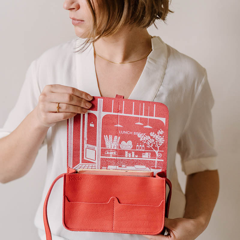 Op zoek naar een stijlvol en modieus leren schoudertasje voor dames waar je overal mee op zal vallen? De Lunch Break van Keecie is precies wat je zoekt! Deze compacte dames crossbody bag in prachtig koraalrood leer is de perfecte metgezel voor al je dagelijkse avonturen.