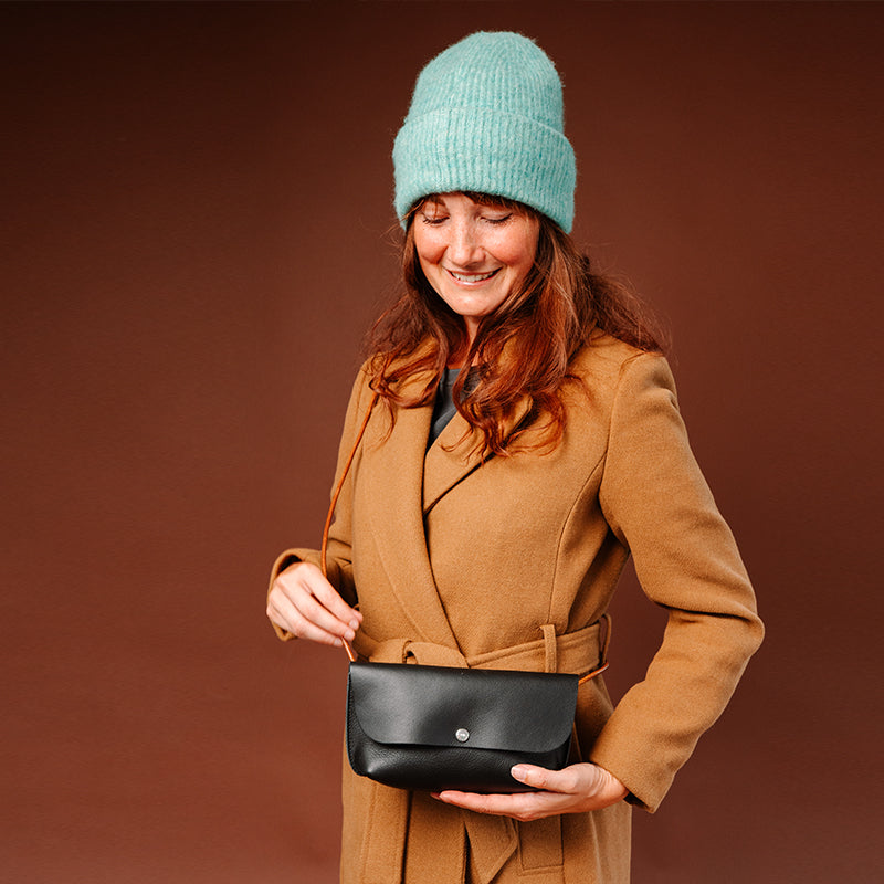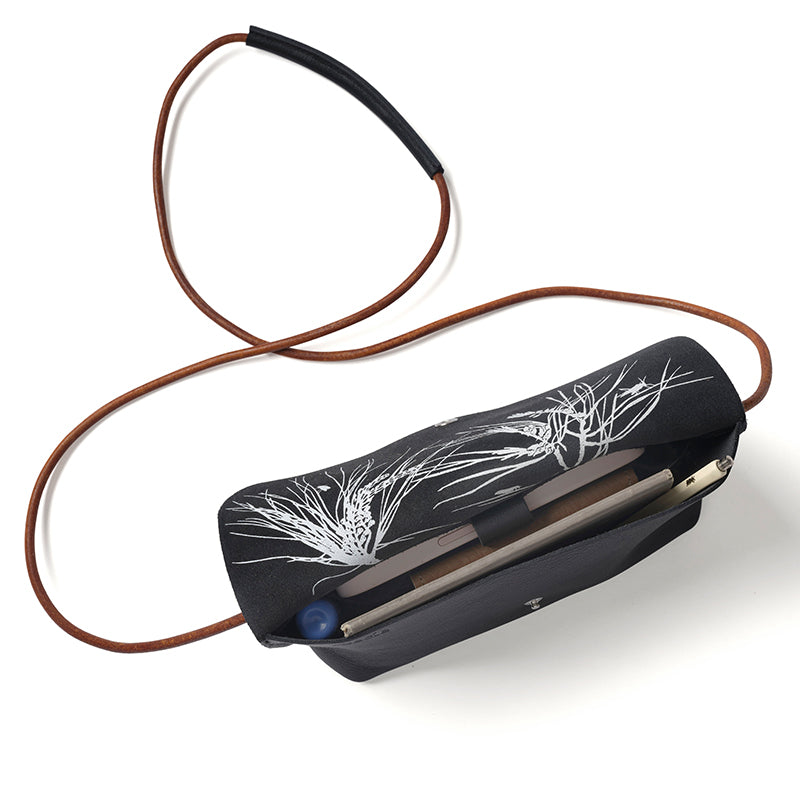 Met ons zwarte Secret Garden handtasje steel jij de show. Op een festival, tijdens een avondje uit of gewoon op een doordeweekse dag. De schouderband is gemaakt van een soepel leren koord en de bodem van de tas is op een slimme manier in elkaar gezet in ons naaiatelier. Dit geeft Secret Garden een stoere én verfijnde uitstraling.