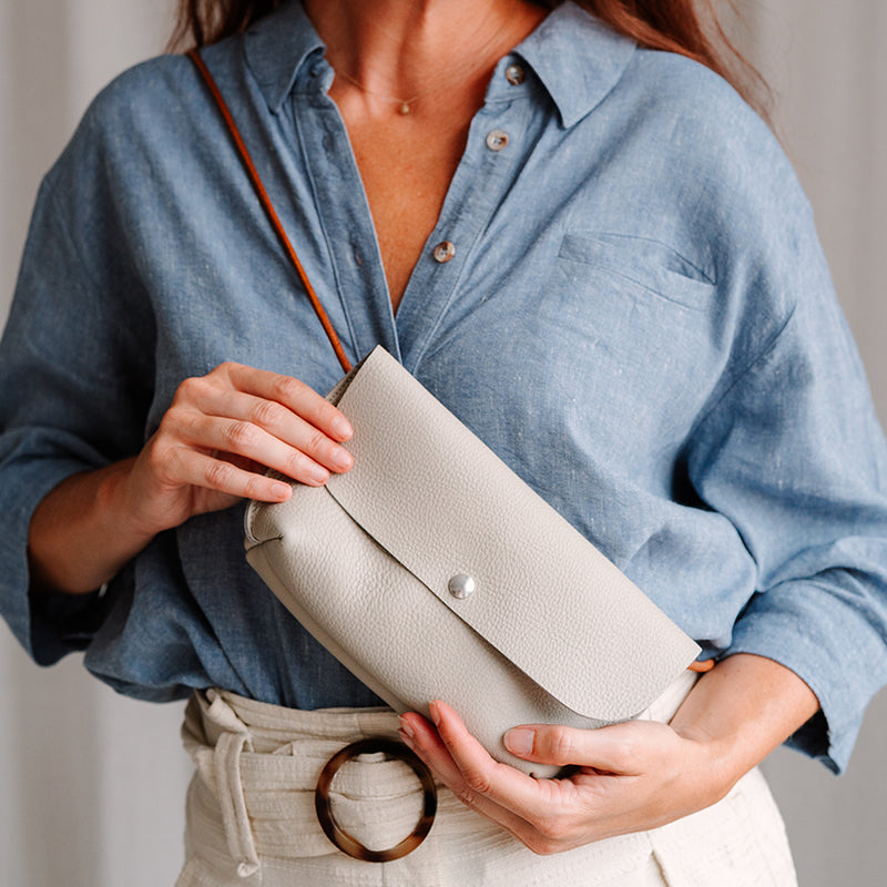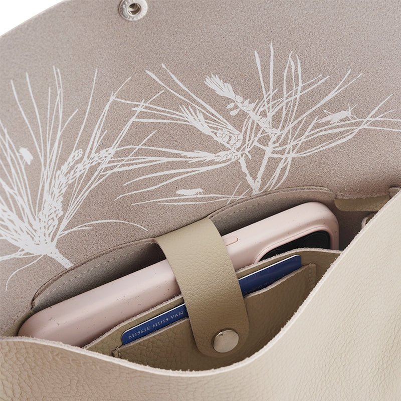 Met ons beige Secret Garden handtasje steel jij de show. Op een festival, tijdens een avondje uit of gewoon op een doordeweekse dag. De schouderband is gemaakt van een soepel leren koord en de bodem van de tas is op een slimme manier in elkaar gezet in ons naaiatelier. Dit geeft Secret Garden een stoere én verfijnde uitstraling.