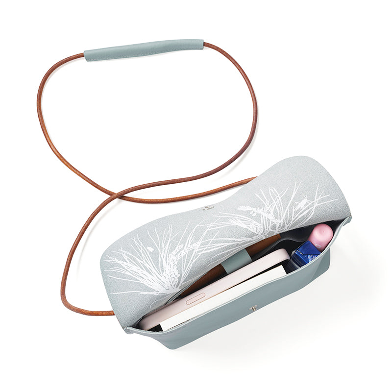 De tas heeft een unieke schouderband, die op twee verschillende manieren gedragen kan worden: