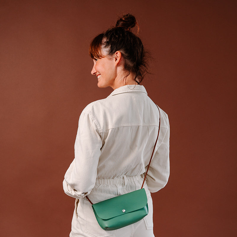 Met ons groene Secret Garden handtasje steel jij de show. Op een festival, tijdens een avondje uit of gewoon op een doordeweekse dag. De schouderband is gemaakt van een soepel leren koord en de bodem van de tas is op een slimme manier in elkaar gezet in ons naaiatelier. Dit geeft Secret Garden een stoere én verfijnde uitstraling.