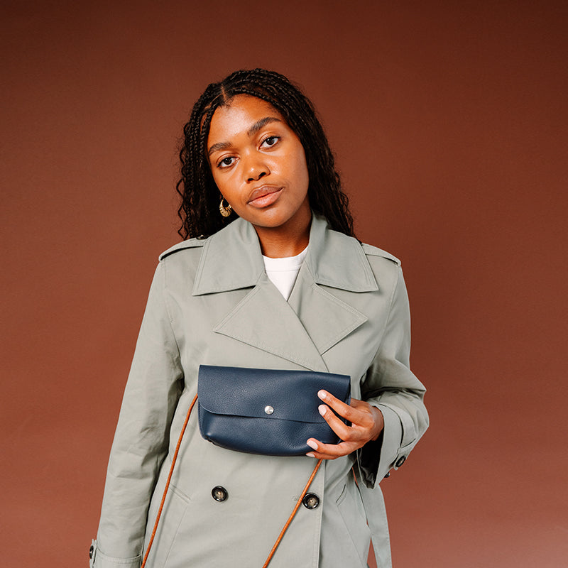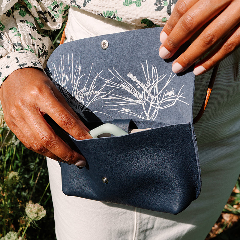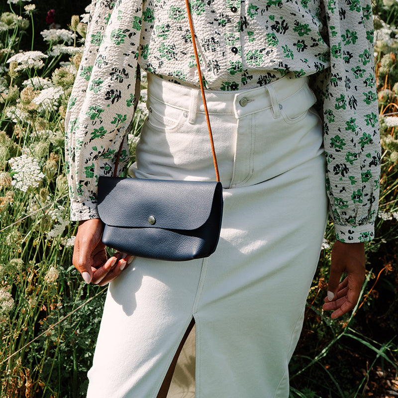 Met ons donkerblauwe Secret Garden handtasje steel jij de show. Op een festival, tijdens een avondje uit of gewoon op een doordeweekse dag. De schouderband is gemaakt van een soepel leren koord en de bodem van de tas is op een slimme manier in elkaar gezet in ons naaiatelier. Dit geeft Secret Garden een stoere én verfijnde uitstraling.