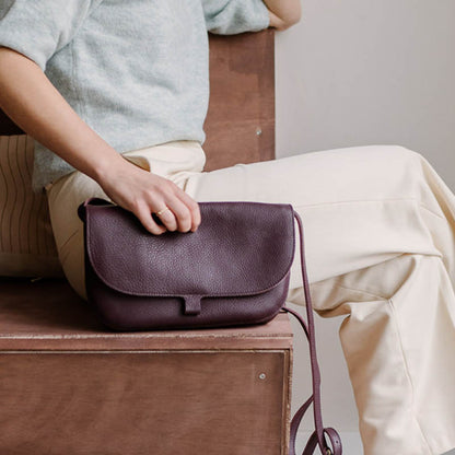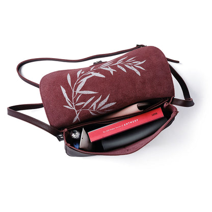 Bij het openen van deze dames schoudertas met riem word je meteen verrast door onze zeefdruk van een olijftak - het symbool van vrede en hoop. De rijke Aubergine kleur van het leer straalt een klassieke en tijdloze luxe uit. Deze bordeauxrode tint gaat goed met zowel donkere als lichte kleuren, wat haar een veelzijdige en chique damestas met schouderband maakt.