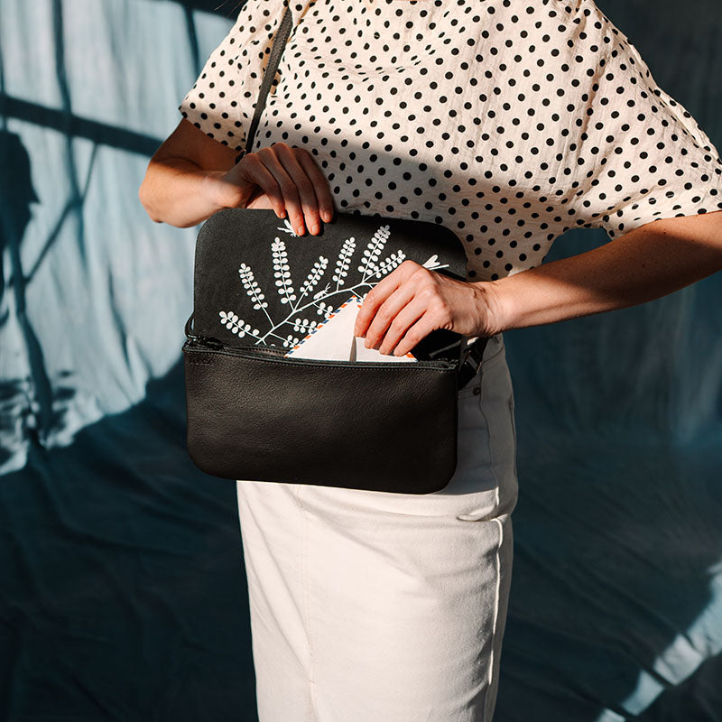 Deze leren damestas is niet alleen handig, maar ook nog eens ontzettend stijlvol. De klassieke zwarte kleur heeft een tijdloze uitstraling en kun je overal mee combineren. Of je hem nu meeneemt als damestas voor werk of in je vrije tijd gebruikt, de Double Up maakt elke look compleet. En de zeefdruk aan de binnenkant geeft deze stoere damestas nét dat beetje extra. Niet voor niets hebben we bij deze tas gekozen voor een botanische print van de Kowhai. Deze boom is belangrijk voor de Maori, die hem op iedere mogelijke manier gebruiken in hun dagelijkse leven. Wat wij weer leuk vonden passen bij deze alleskunner.